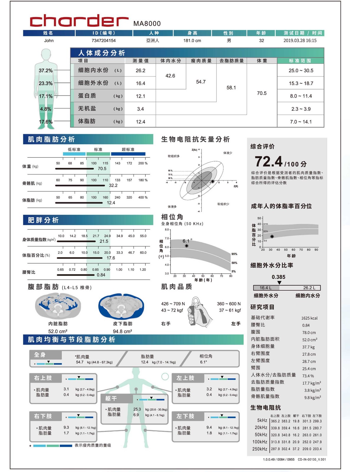 專業(yè)的人體成分分析報(bào)表